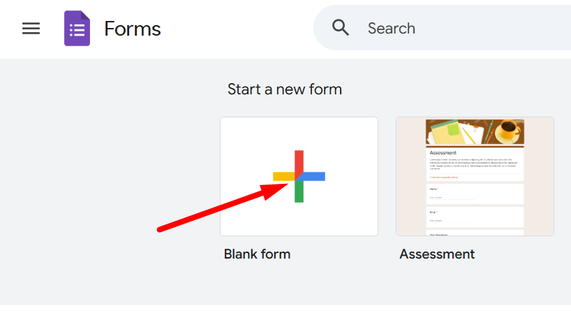 Go to Google Forms and create a new blank form by clicking the “+” button under Start a new form.