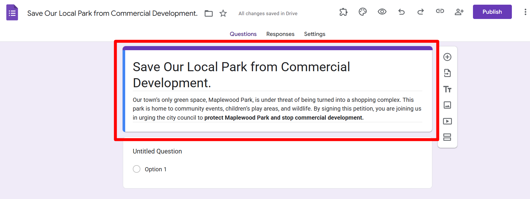 Q1. Can you create a petition directly on Google Forms?