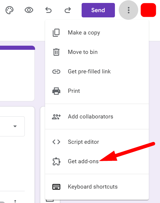 Click on the three vertical dots (⋮) in the upper-right corner of the form.