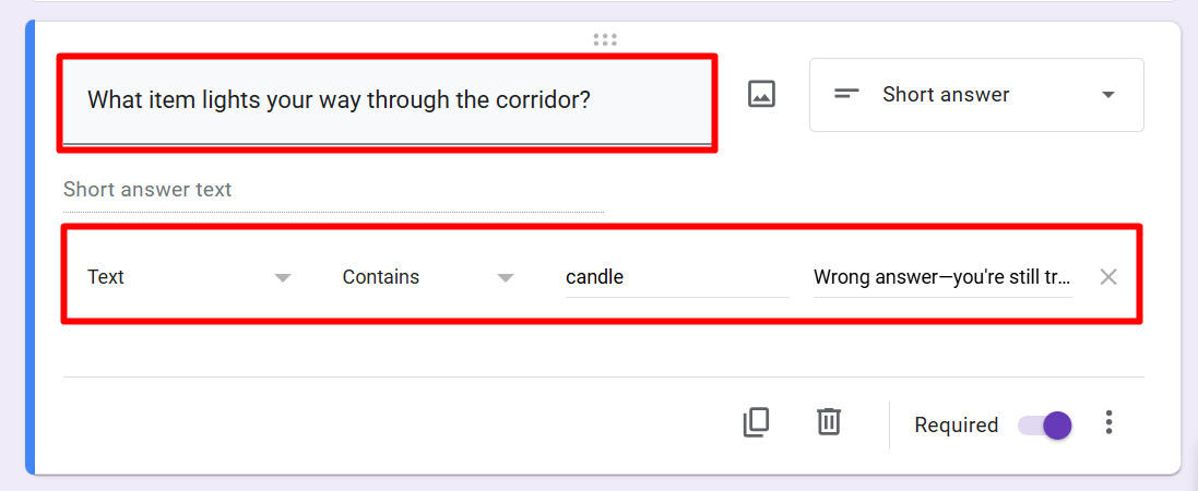 Give your form a title e.g., "Mystery Mansion Escape Room", and add a description that introduces the challenge.