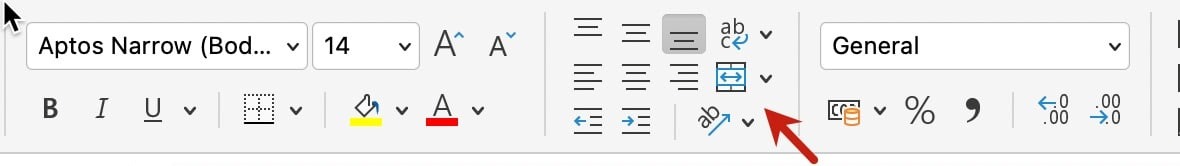 The Wrap Text button is visible in the Alignment section in Windows. For Excel in Mac OS, find the icon with ab written. Click the drop-down menu and press wrap text.