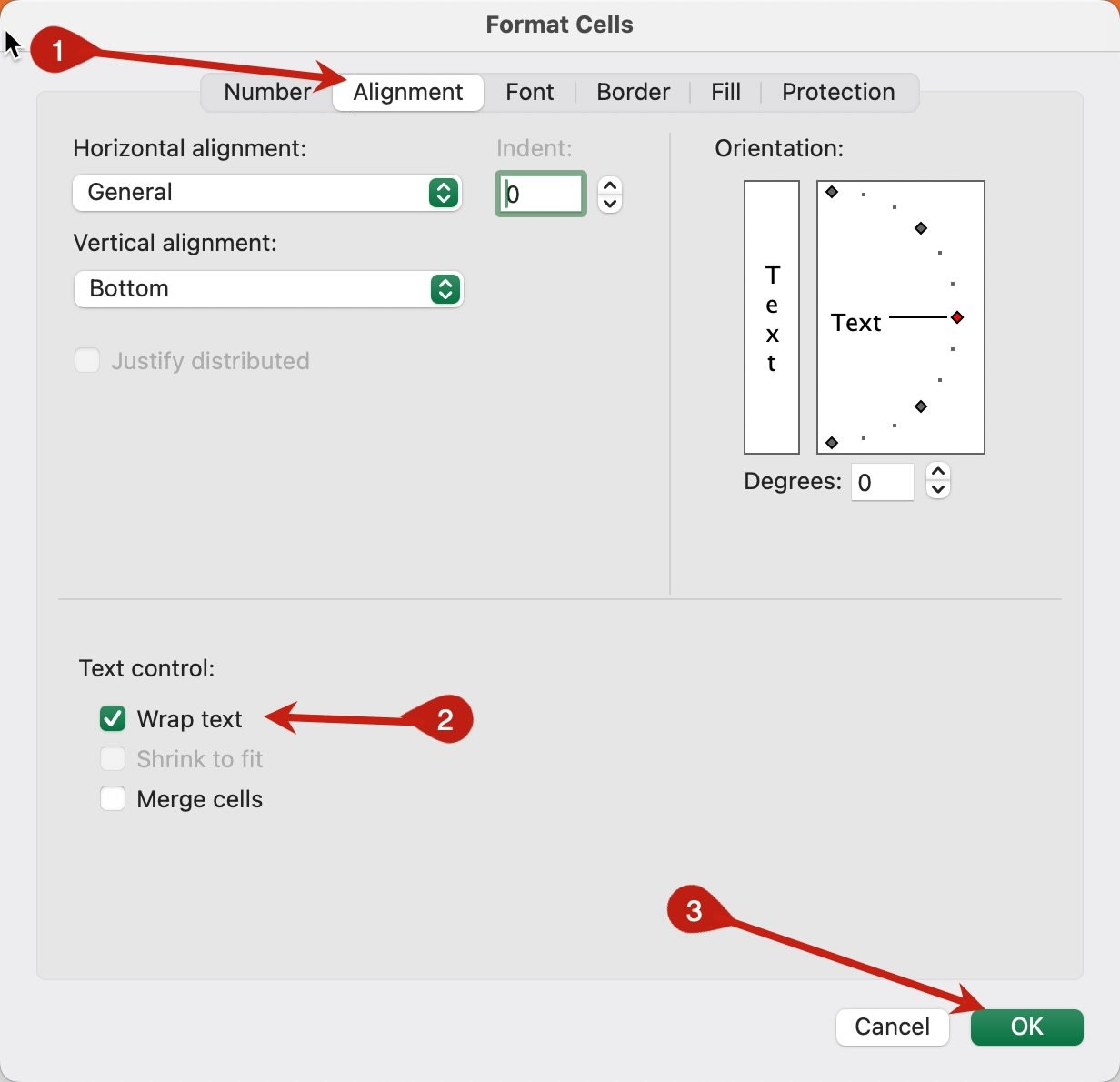 Step 3 - Go To The Alignment Tab And Click Wrap Text CheckBox