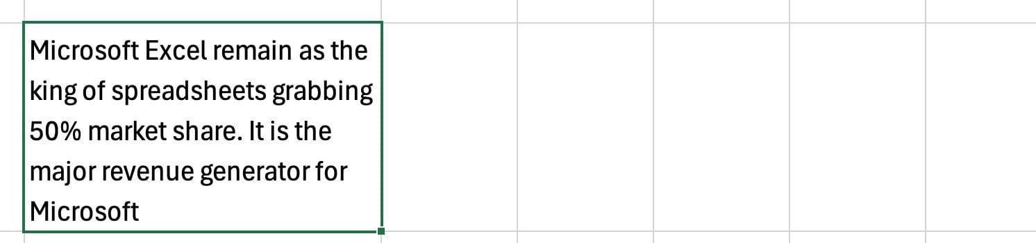 There are multiple ways to wrap text. The quickest way is using the ribbon at the top of the workbook. You can also use keyboard shortcut in Windows. Press ALT+H+W simultaneously to instantly wrap text. For Mac users, this shortcut will not work. Therefore, the easiest way in any system that supports excel is to use the following steps.