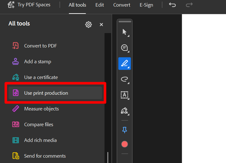 Scroll down and click on “Use Print Production”.