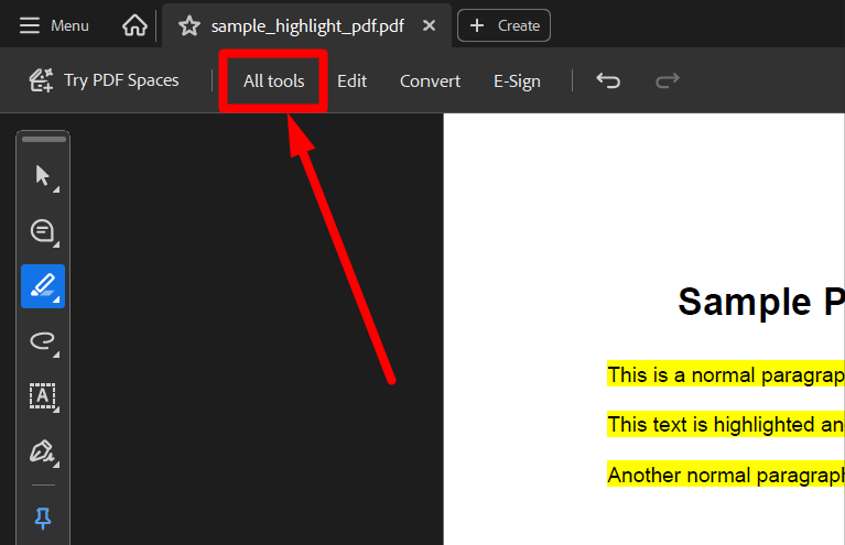 At the top right of Adobe Acrobat, click on “All Tools”.