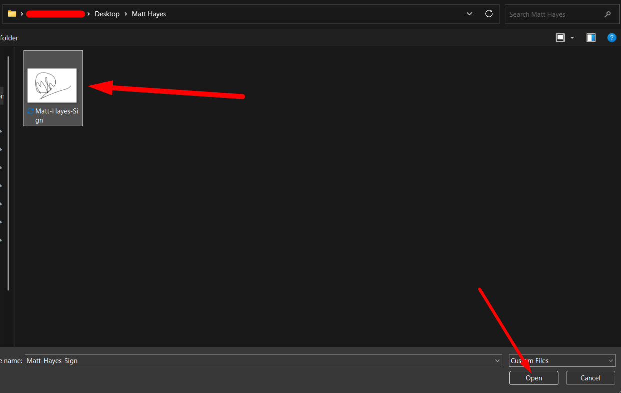 Select your signature file and click on ‘Save’.